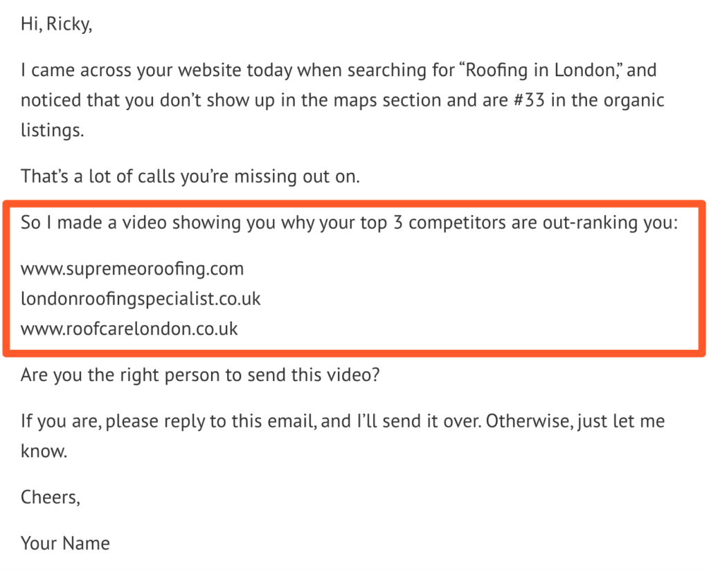 Daryl Rosser在Ahrefs博客上分享了一封提供价值的cold email件的最佳例子之一: