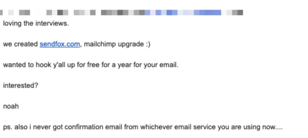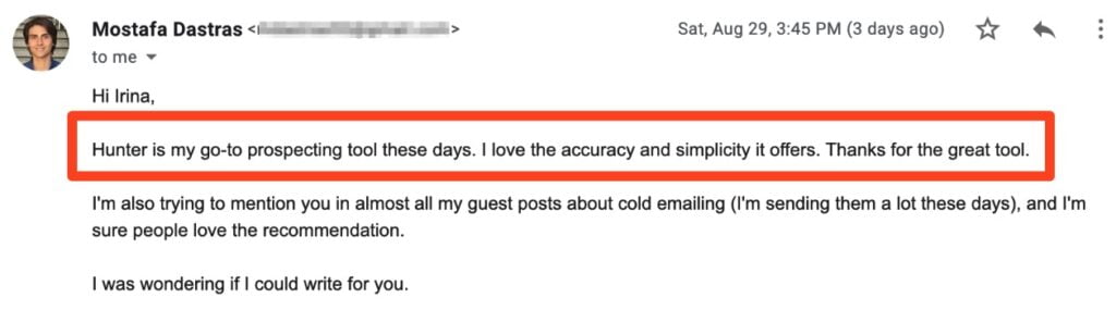 除了具备一个吸引人的主题词(“Writing for my favorite email tool”),从第一行开始,Mostafa Dastras就让我读到了他高度个性化的电子邮件,并对他做出了回应。